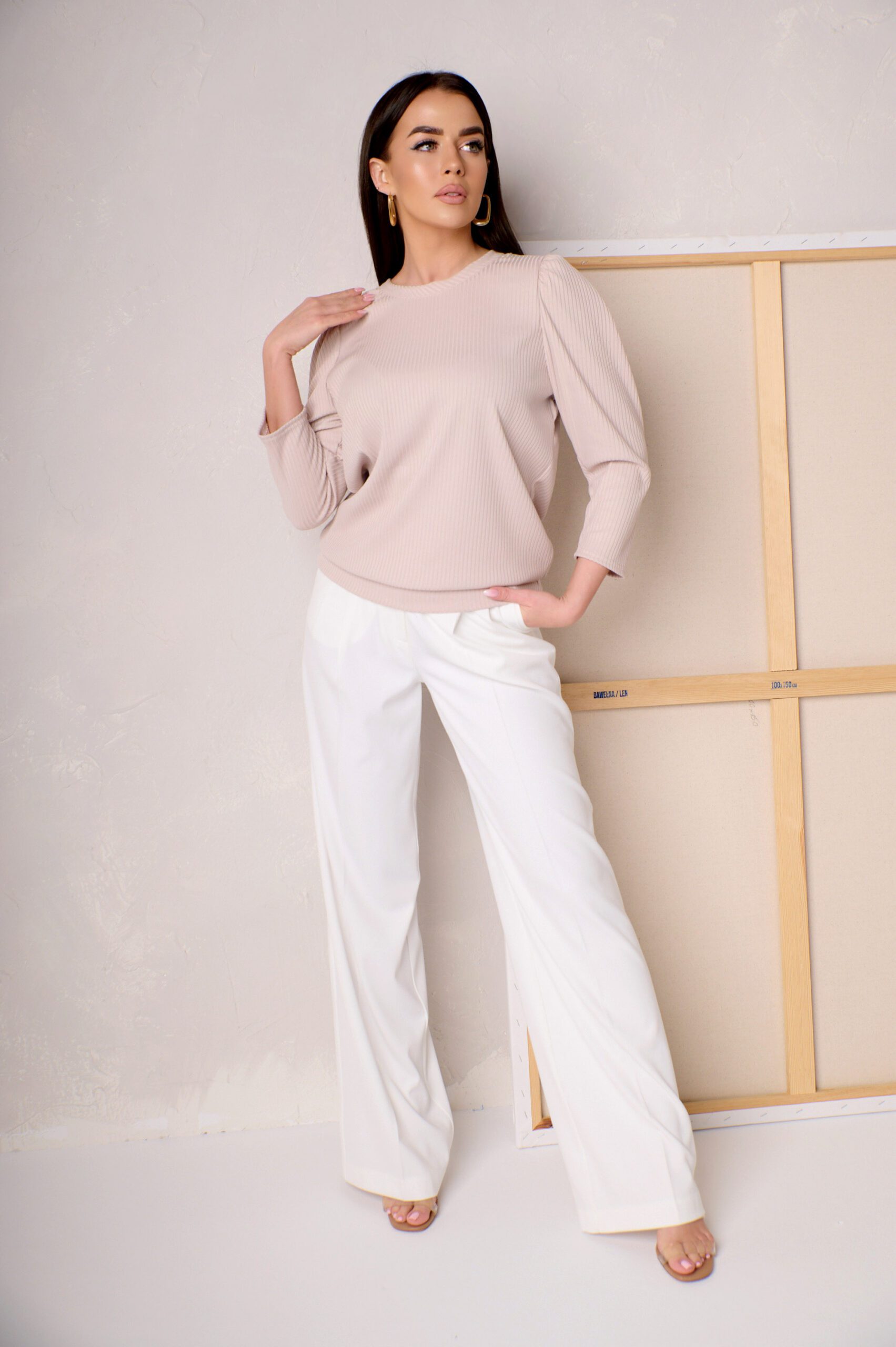 Bluza damska ze prążkowanego materiału. Bluza posiada długi rękaw, dekolt w łódkę. Idealny element stylizacji na wiosnę, który ożywi Twoją garderobę. Dostępna w dwóch kolorach.